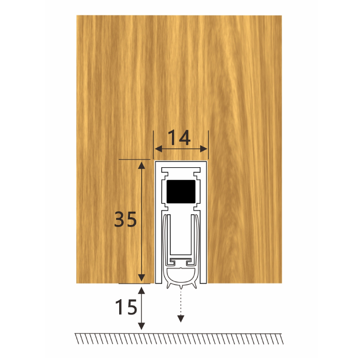 Modelo ideado para ser aplicado en el exterior de puertas nuevas y existentes. Garantiza un gran aislamiento acústico y está disponible en varios colores. Incluye un juego de activación para utilizar con el pulsador de empuje en el lado del tirador.