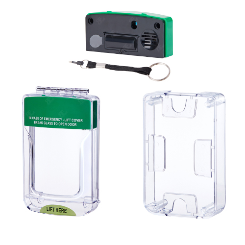 Las cubiertas protectoras de alta transparencia para pulsadores de pared ofrecen una barrera segura contra vandalismo, daños o mal uso.