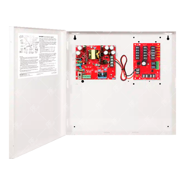 Su capacidad de salida permite alimentar varios módulos de control y monitoreo, siempre que la demanda total no exceda los 5 A especificados. El ejemplo de tres módulos indicado por el fabricante es solo referencial y no constituye una restricción técnica.
