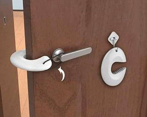 Coloque el protector de pellizco de dedo de la puerta en el lateral o superior de la puerta. Proporciona un cojín suave entre la puerta y el marco de la puerta. Cuando no esté en uso, cuélgalo alrededor de la manija de la puerta o suspende en cualquier lugar conveniente a través del orificio en la superficie del producto.