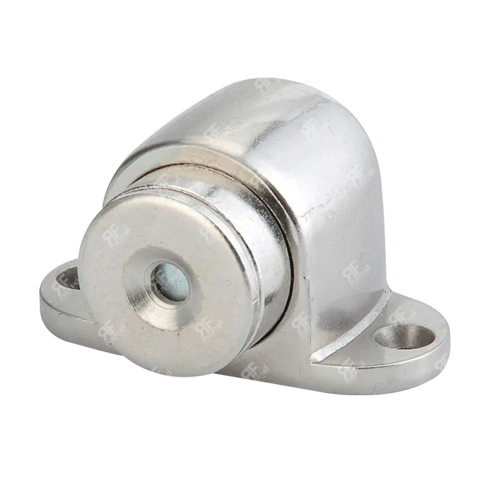 Este tope magnético de piso en acero inoxidable, cuenta con un resorte interno que amortigua golpes y evita daños en la cerradura al abrir bruscamente.