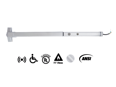 Dispositivo diseñado especialmente para aplicaciones en puertas de emergencia y/o cortafuego en edificios o inmuebles que requieran salidas de escapes según las normas vigentes.