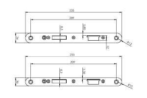 La caja y la tapa de la cerradura se superponen en los 3 puntos de unión con el frente, haciendo que la cerradura sea sumamente sólida, especialmente respecto al empuje lateral (intento de robo).).