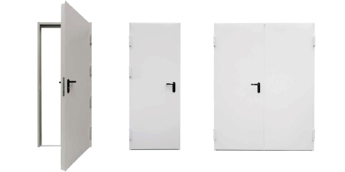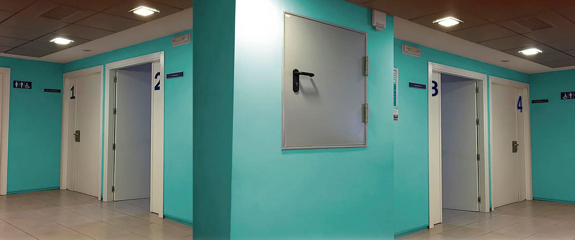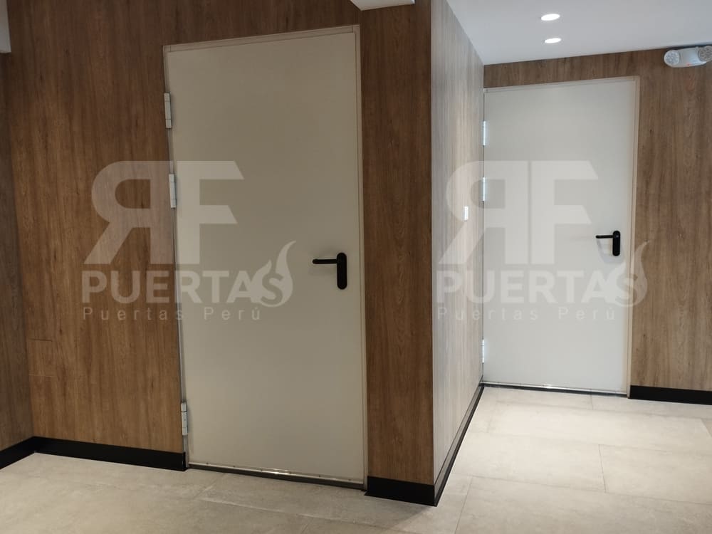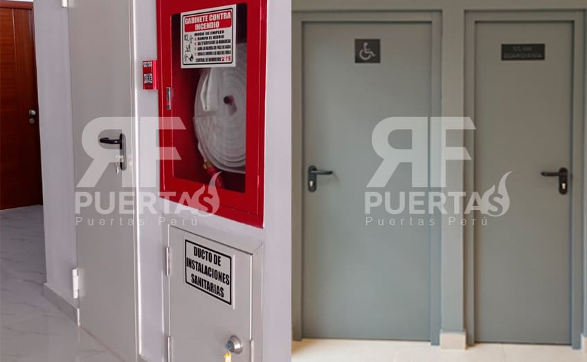Las puertas metálicas cortafuego de PUERTAS RF interrumpen la propagación del fuego en un ambiente